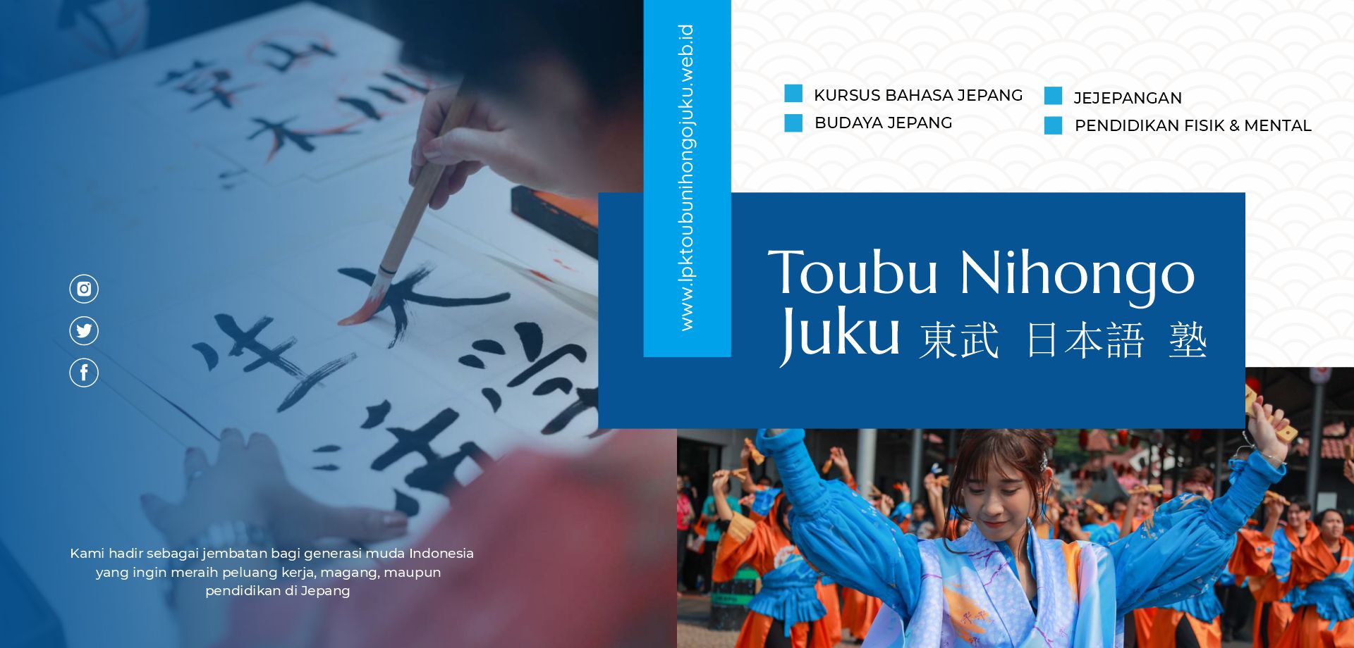 Toubu Nihongo Juku adalah lembaga pelatihan kerja dan magang ke Jepang yang berlokasi di Surabaya. Kami hadir sebagai jembatan bagi generasi muda Indonesia yang ingin meraih peluang kerja, magang, maupun pendidikan di Jepang. Melalui pembelajaran bahasa, pelatihan budaya, serta pembinaan fisik dan mental, kami mempersiapkan peserta secara menyeluruh agar mampu bersaing dan beradaptasi di lingkungan Jepang.